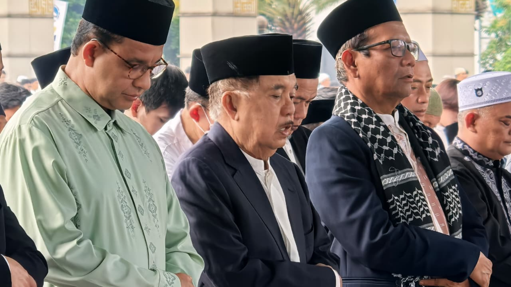 Kehadiran ketiga sosok ini seolah mengirimkan pesan damai tentang pentingnya persatuan di hari yang fitri.