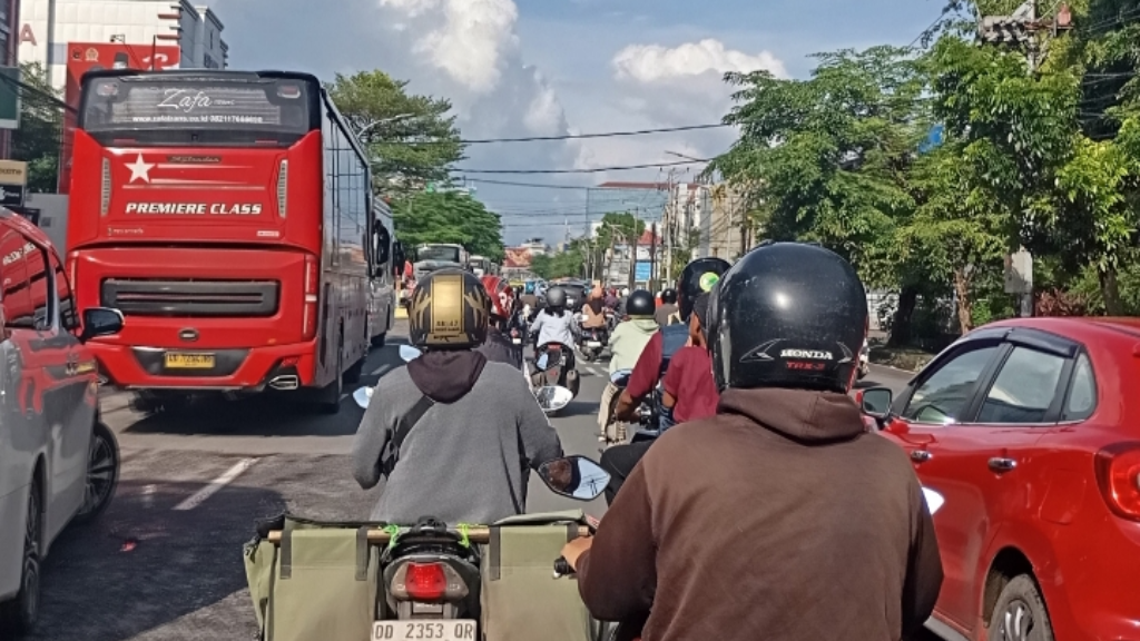 Kemacetan sepanjang sekitar 1,3 km melanda mulai dari depan kantor Dinas Pariwisata Makassar di Jalan Urip Sumoharjo hingga Jalan Gunung Bawakaraeng.