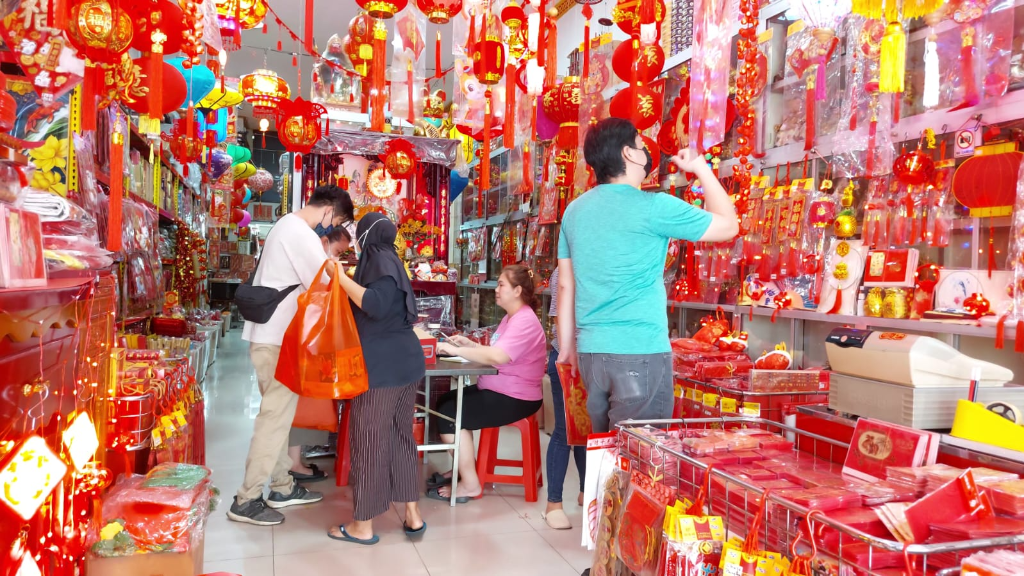“Di sini beli kebutuhan imlek, cari untuk dipasang di pintu, pernak-pernik rumah. Sudah ke tradisi tiap tahun,” ujar Rony.
