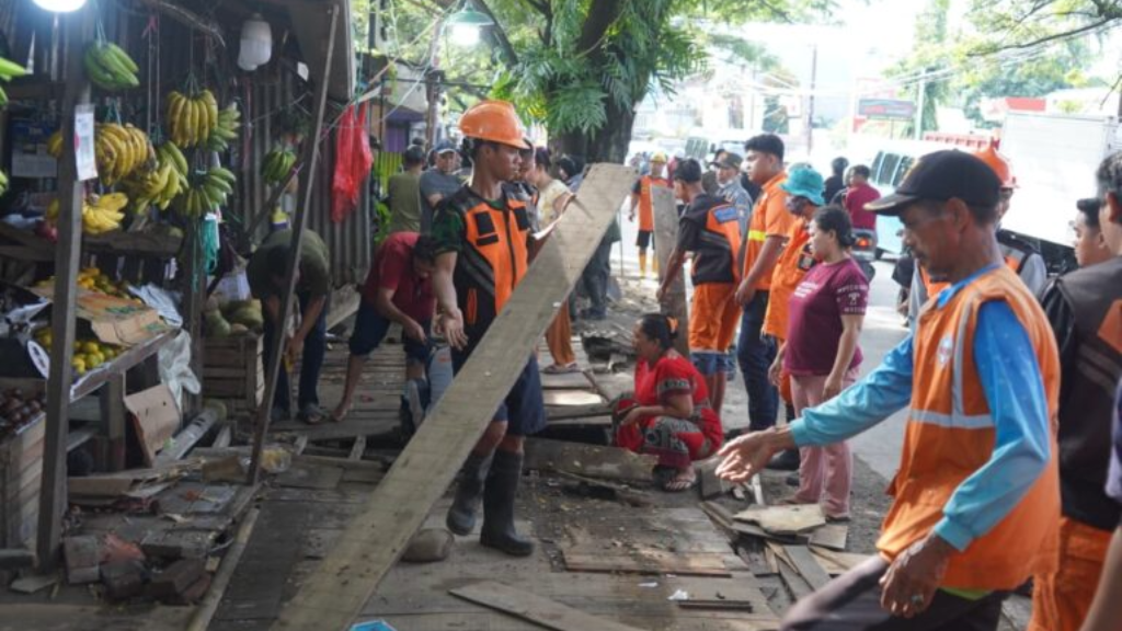 CELEBESMEDIA.ID, Makassar - Sebanyak 55 lapak Pedagang Kaki Lima (PKL) yang berdiri di atas trotoar dan menutup saluran drainase ditertibkan dalam operasi terpadu, Senin (16/2/2026).