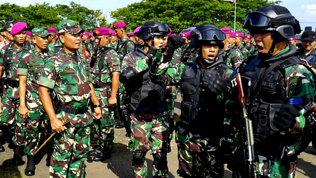 Lantamal VI Makassar Unjuk Kekuatan Saat Gelar Pasukan PAM Pemilu 2019