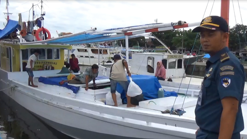 Petugas Syahbandar Makassar mengawasi warga kapal tradisional dan nelayan / foto: Arbab