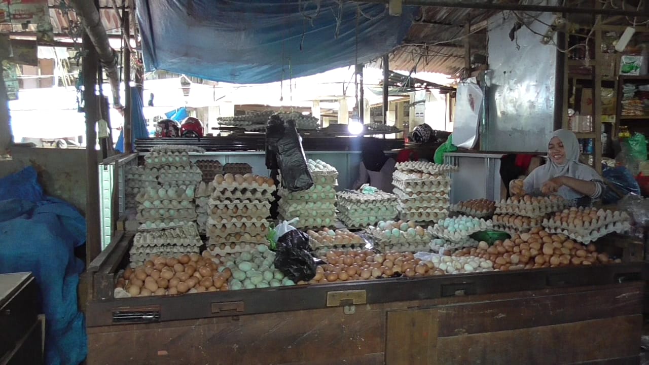 CELEBESMEDIA.ID, Makassar - Harga telur ayam ras di pasar Pa'baeng-baeng, Makassar mengalami penurunan pada akhir pekan ini, Sabtu (23/2/2019).