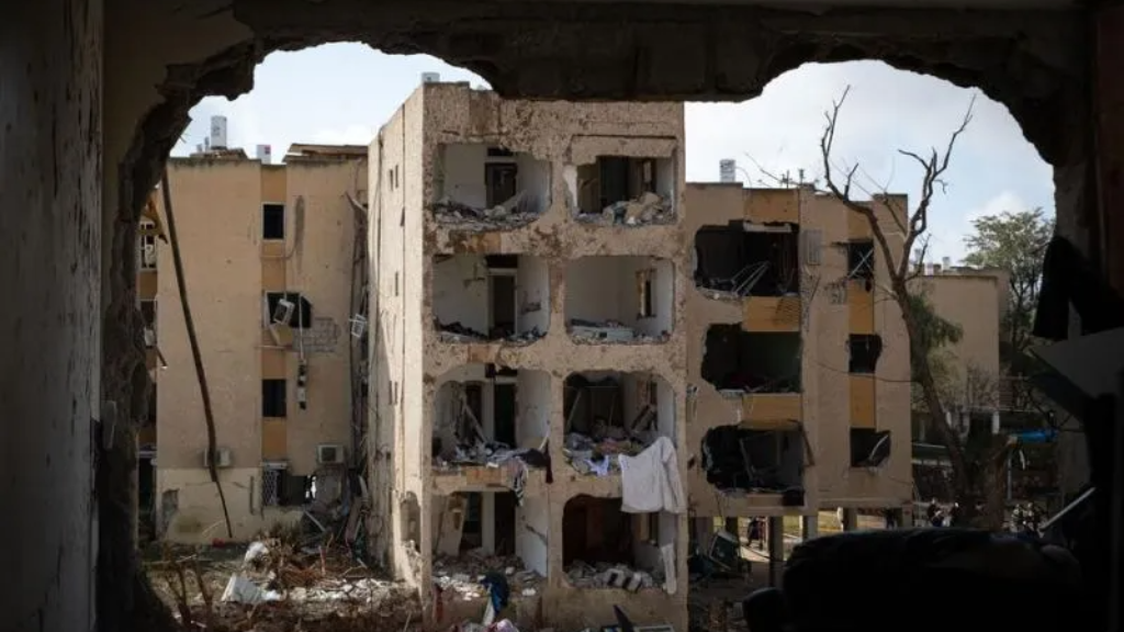 Gedung di Arad, Israel, Minggu (22/3/2026) rusak parah akibat serangan rudal - (foto by ANTARA/Xinhua)