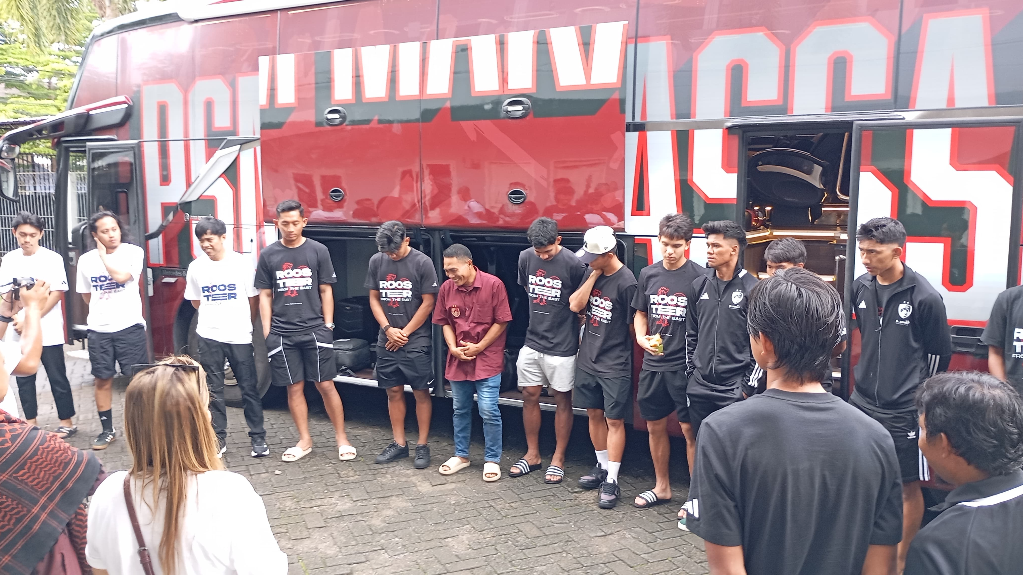 Doa bersama sebelum pengoperasian bus baru PSM Makassar menuju Parepare, Minggu (1/2/2026) - (foto by Rifki)