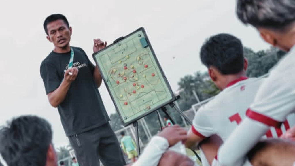 Akbar Rasyid memberi instruksi ke pemain PSM U-20 - (foto by Akbar)
